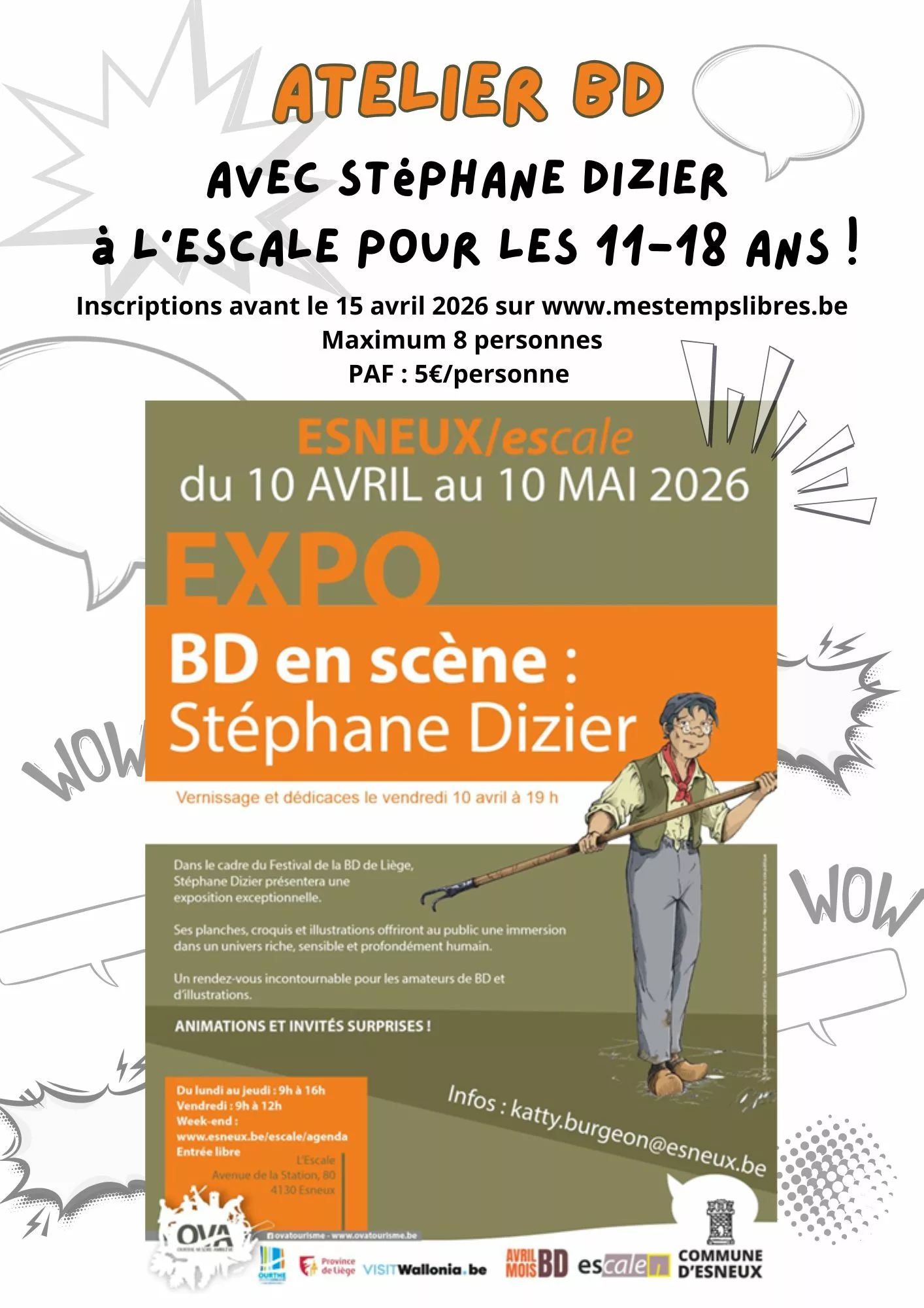 Rejoins Stéphane Dizier, auteur belge passionné, pour un atelier créatif BD à l’Escale :